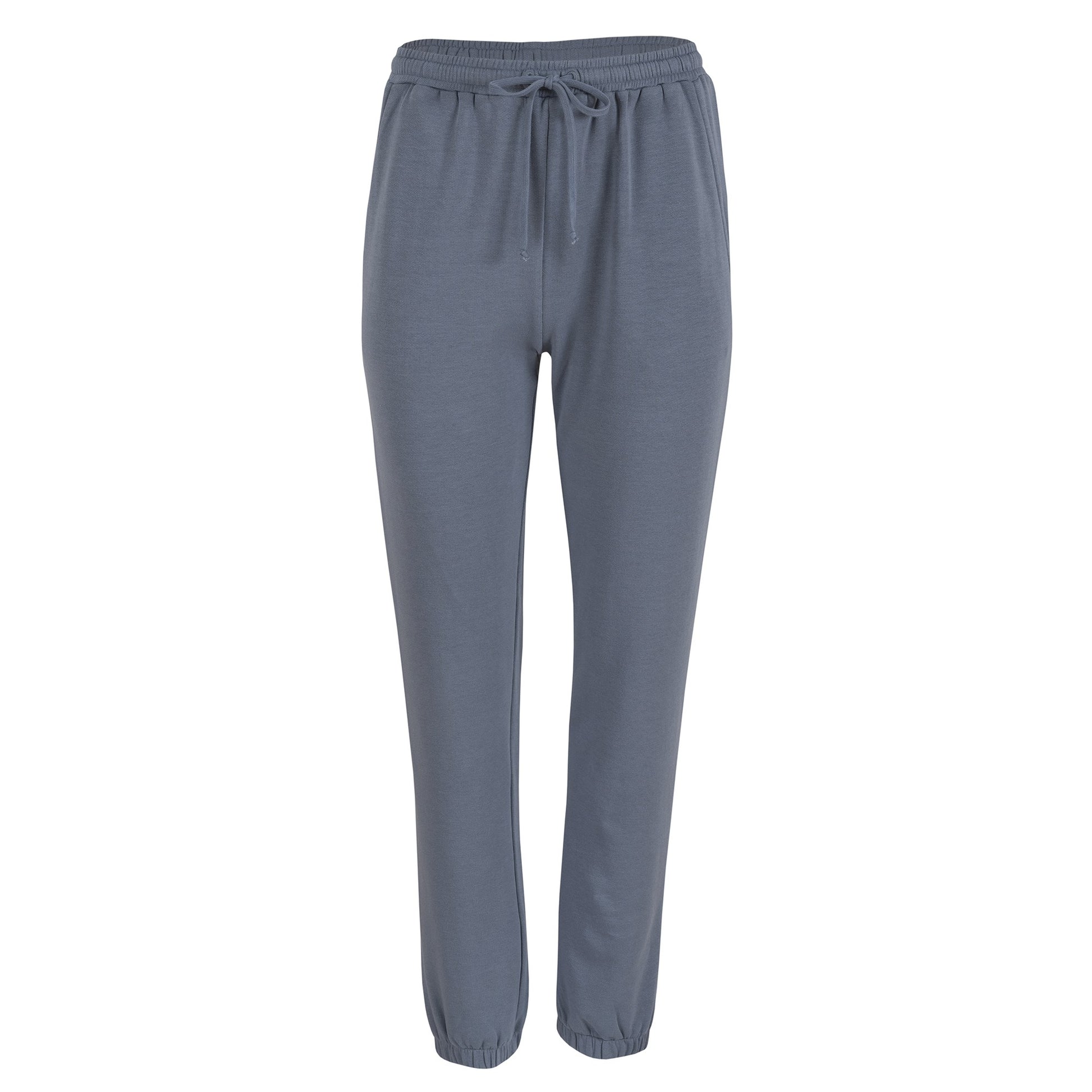 Sweat Hose in jeans blau, breiter elastischer Bund mit Webband und seitlichen Eingriffstaschen, Gummizug am Beinsaum.