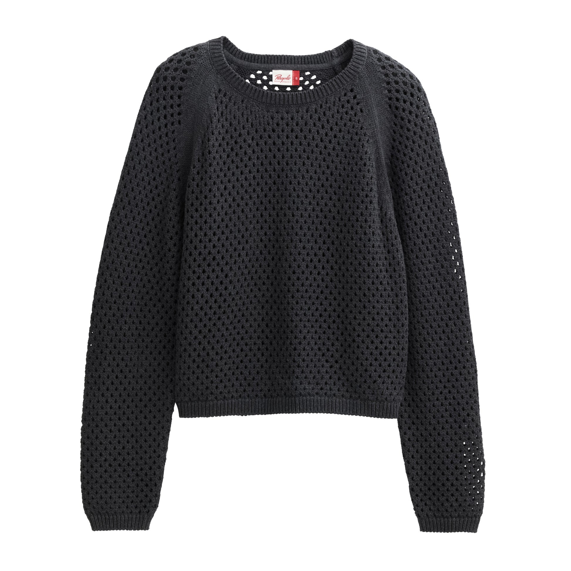 Anziehende Leichtigkeit. Lass dich von der Sonne kitzeln mit unserem luftigen Ajour Pullover. Das Mélange Garn und das Lochstrick Muster laden ein zum Spiel mit den Farben.