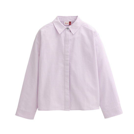 Straight forward, aber bitte feminin! Hier trifft moderne Geradlinigkeit auf helles, zartes Violett und kreiert mit verdeckter Knopfleiste einen minimalistischen Style, der durch Understatemnt auffällt. Ob elegant zu feiner Hose oder als Stilbruch zu verwaschener Denim, diese Bluse ist immer die richtige Ergänzung. "regulär & gerade geschnitten / regular fit