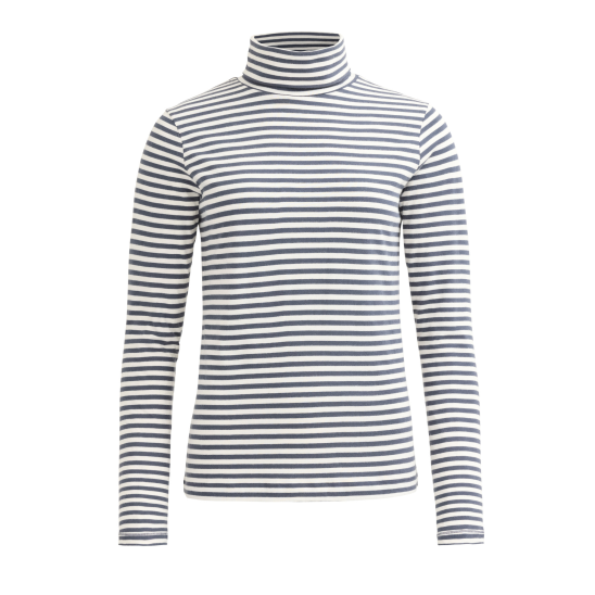 Ringel und Rollkragen sind immer eine gute Idee für alle, die sportive Eleganz mögen. Erst recht, wenn das Rollkragenshirt aus wunderbar weichem Bio-Baumwollgarn gemacht ist und zart die Haut umschmeichelt. Aber egal ob allein auf der Haut oder als wärmende Schicht für drunter, dieses Basic Teil ist für jede Outfit Idee zu haben. "regulär & gerade geschnitten / regular fit