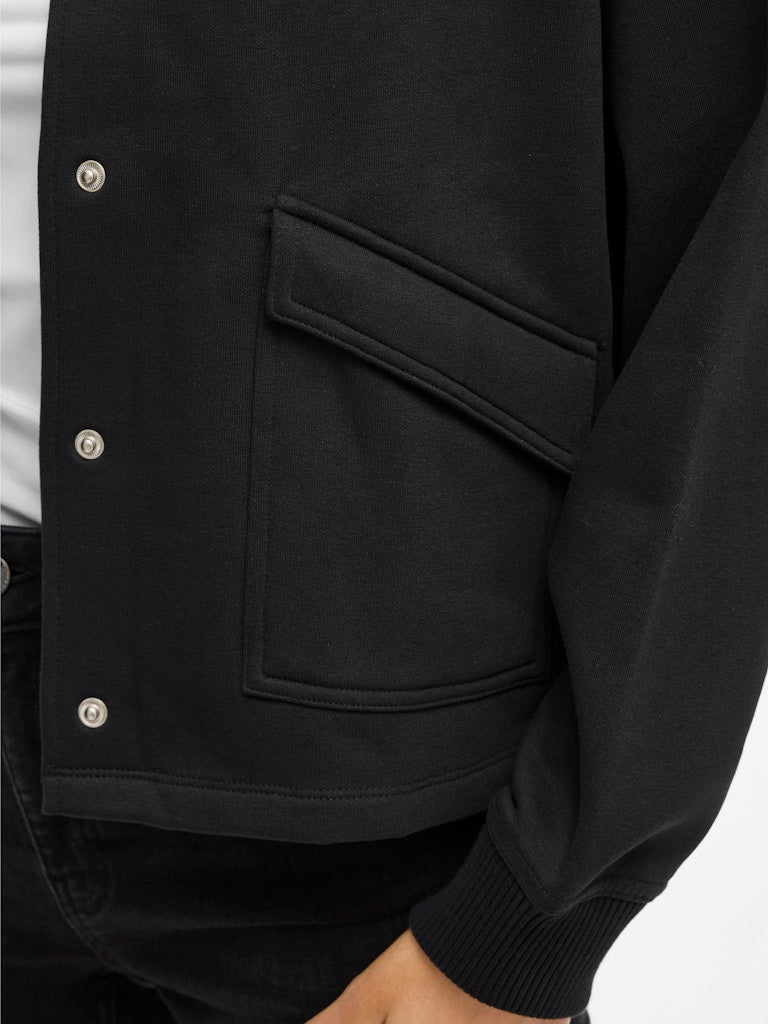 Kurze Jacke mit Druckknopfverschluss• Große Fronttaschen• Überschnittene Ärmel• Gerippter Rundhalsausschnitt• Gerippte Ärmelbündchen• Boxy Fit• Länge: 58 cm in Größe M• Ärmellänge: 60 cm in Größe M