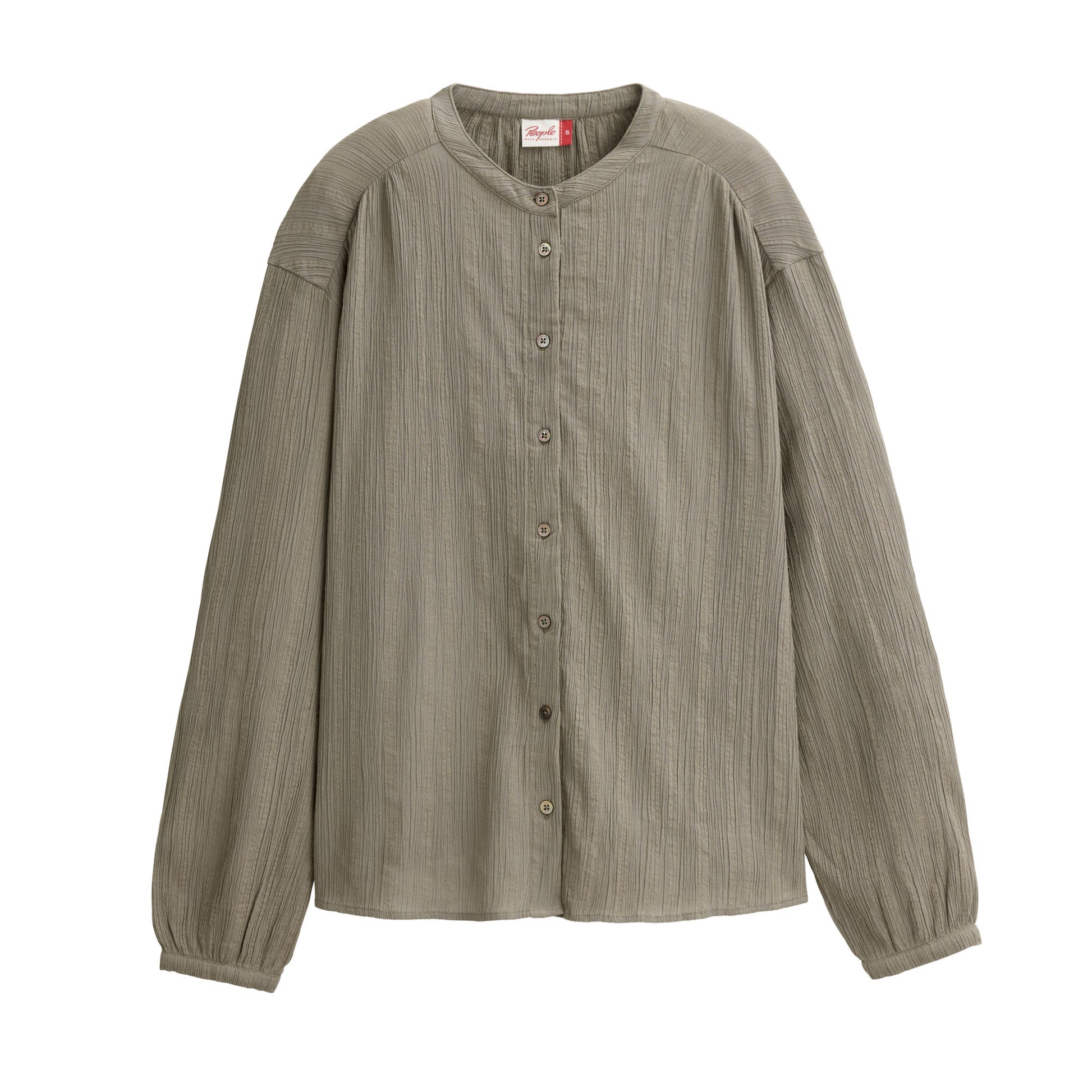Wilde Natur meets lässige Eleganz. Das Moosgrün und die kreppige Struktur dieser Bluse erinnern an Oberflächen aus der Natur und strahlen durch den puristischen Schnitt, die lockere Silhouette und feine Kräuselungen eine mühelose und feminine Eleganz aus. 100% Baumwolle (bio)