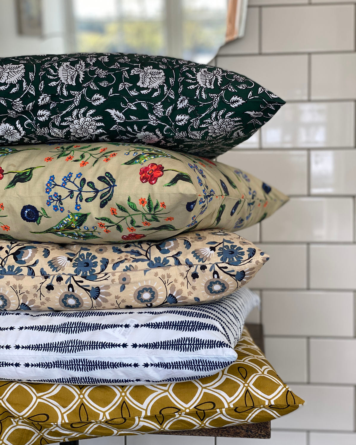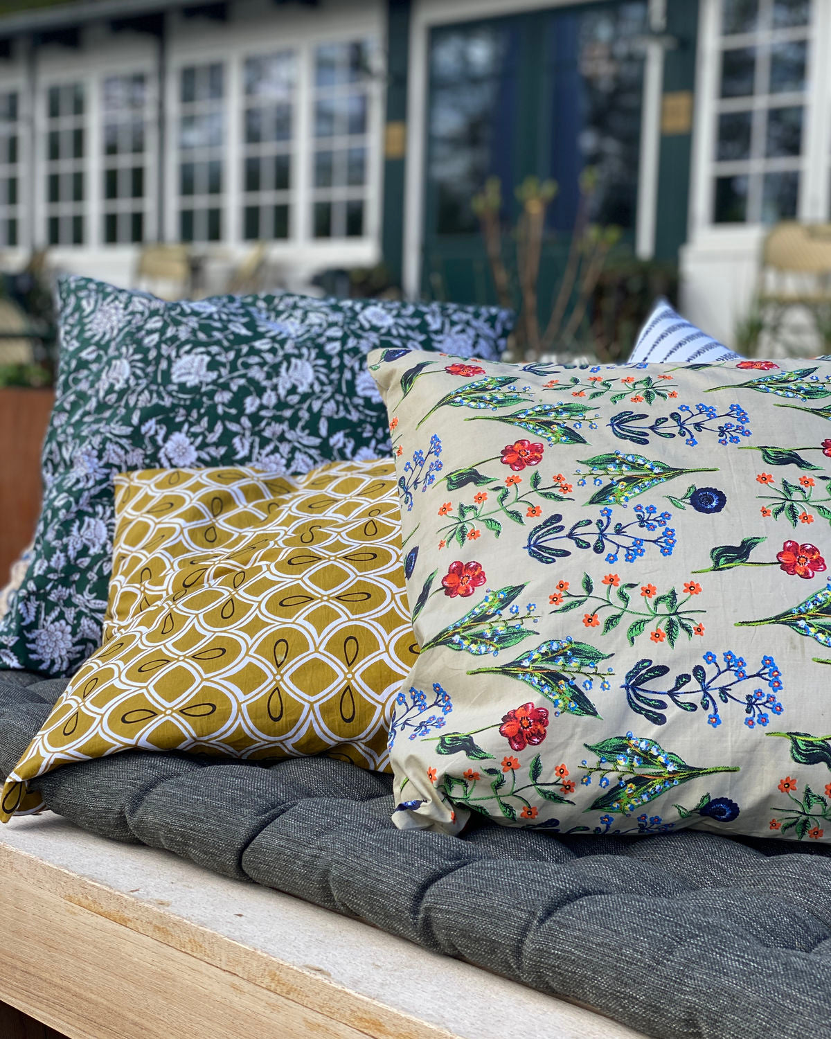 Eine schnelle, farbenfrohe und mühelose Erfrischung deiner Couch und Einrichtung als Ganzes. Dieser Kimi-Kissenbezug aus Baumwolle ist von House Doctor und hat einen weißen Blumendruck auf dunkelgrünem Hintergrund. Lässt sich prima mit anderen Mustern und Farben mischen und du kannst nach Lust und Laune ein einzelnes Kissen austauschen.