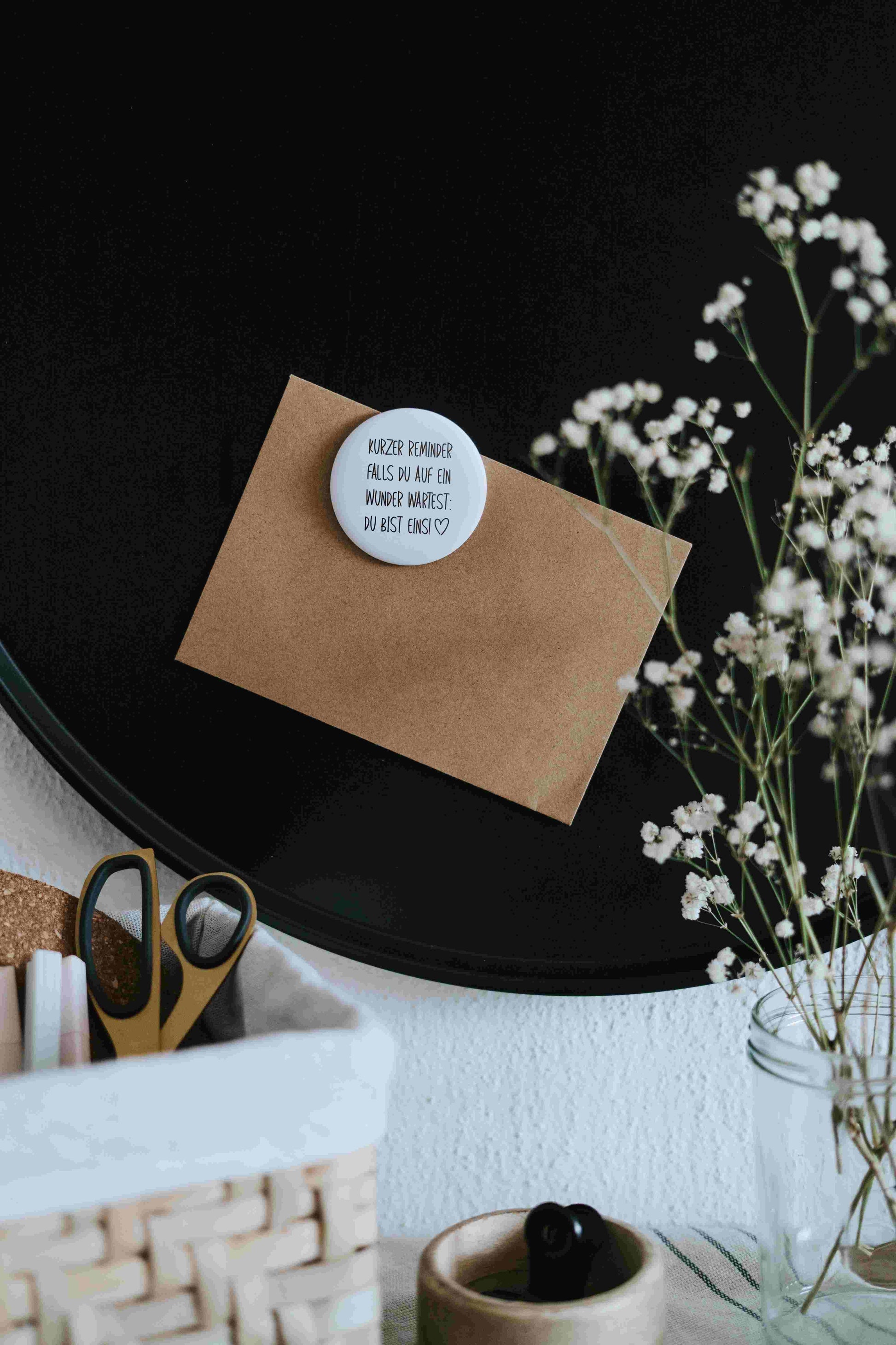Entdecke unseren großen Magneten mit dem inspirierenden Spruch "Kurzer Reminder falls du auf ein Wunder wartest: Du bist eins". Ideal, um deinem Zuhause eine positive, ermutigende Atmosphäre zu verleihen! Dieser Magnet ist das perfekte Geschenk für besondere Menschen in deinem Leben, um ihnen ein Lächeln ins Gesicht zu zaubern und sie daran zu erinnern, wie einzigartig und wertvoll sie sind.