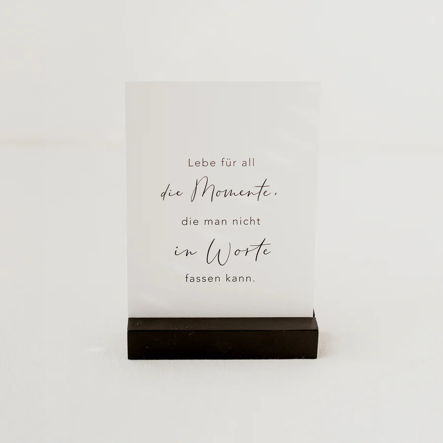 Hast du schon unsere Kartenständer schwarz im 2er Set aus Buchenholz entdeckt? Das kleine Herz auf der Vorderseite besticht durch das minimalistische, dennoch verspielte Design. Die Rückseite des Kartenständers ziert ein kleines Eulenschnitt Logo. Durch die ausgefräste Spalte des Holzes entsteht eine perfekte Halterung für deine Liebhabsel. Ein schnelles Austauschen nach Lust und Laune ist somit problemlos möglich. Das kleine Format eignet sich perfekt für deine liebsten Fotos, Postkarten und kleine Bilder. Ebenso gut kommen unsere Postkartenständer auf Hochzeiten und besonderen Anlässen, als Halterung für die Tischnummern einer Sitzordnung zum Einsatz.