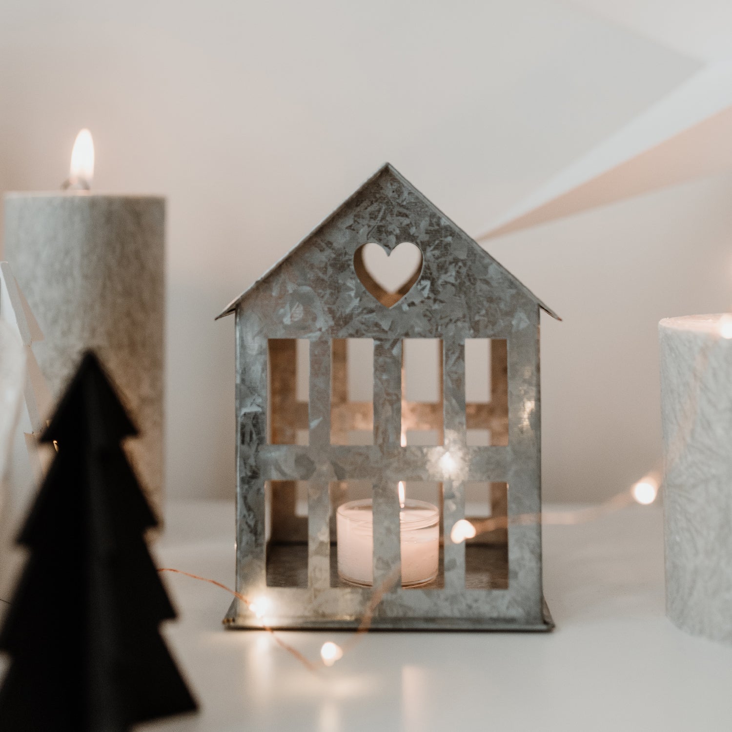 Mit seinen filigranen Details, den vielen kleinen Fenstern und dem herzförmigen Ausschnitt in der Dachspitze wird es zu einem liebevollen Blickfang. Erhältlich in drei Größen und zwei Farben, fügt sich das Metallhaus wunderbar in jede Dekoration ein und verbreitet eine gemütliche Atmosphäre.
